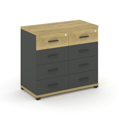 Concept Тумба приставная широкая 8 ящ. CN.TSP-013 A Дуб Винченцо/Антрацит/Мет...