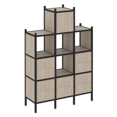 Loft Прямой стеллаж VR.L-13 Дуб Аттик/Металл Черный 1278*446*1458