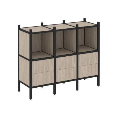 Loft Прямой стеллаж VR.L-06 Дуб Аттик/Металл Черный 1278*446*636