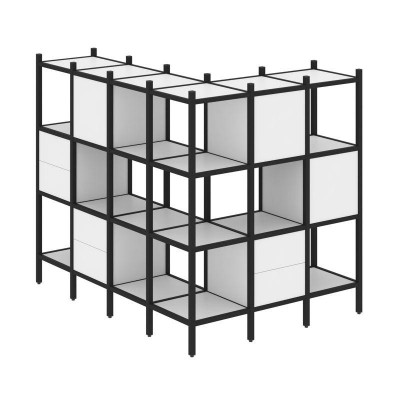 Loft Угловой внешний стеллаж наборный VR.L-51 Белый Бриллиант/Металл Черный 8...
