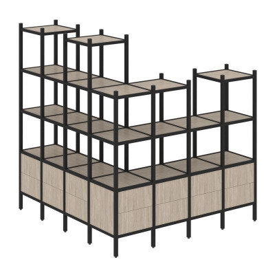 Loft Угловой внешний стеллаж наборный VR.L-56 Дуб Аттик/Металл Черный 1694*12...