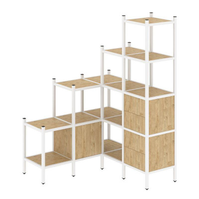 Loft Угловой внутренний стеллаж VR.L-36 Тиквуд Светлый/Металл Белый 862*862*1458