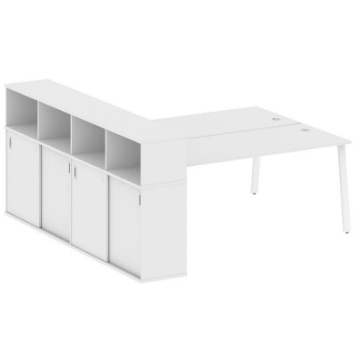 Прямые рабочие станции F2F на А-образных опорах с опорными тумбами/шкафами