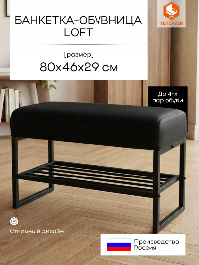 Банкетка-обувница Charli Lux/Чарли Люкс экокожа , Sharp Чёрный