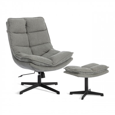 Кресло лаунж Reflex/Рефлекс с пуфом велюр/букле (HYP), светло-серый