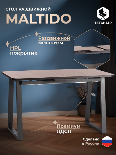 Стол MALTIDO ЛДСП/HPL/металл, 130 х 75+30 х 75 см, Дуб Вотан/чёрный