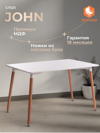 Стол JOHN (mod. T1001) МДФ/дерево, 120 х 80 х 75 см , White (Белый) / Natural...