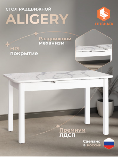 Стол ALIGERY ЛДСП/HPL/опора-массив березы , 130 х 75+30 х 75 см, Мрамор светл...