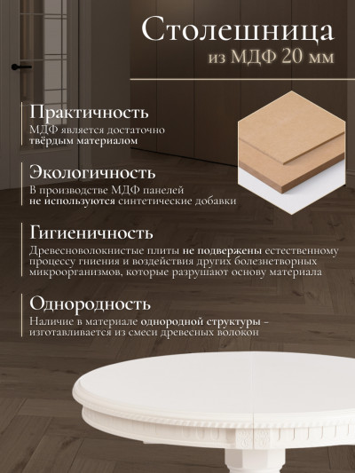 Стол STEFANO круглый бук, мдф, D90+30x77см, Ivory white
