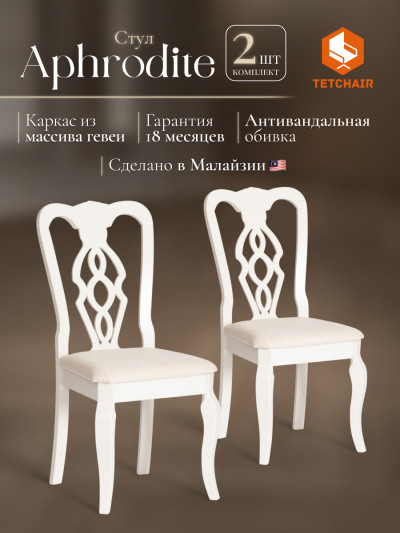 Стул - Афродита/ Aphrodite дерево гевея, 46х54х99см, Ivory white, ткань кремо...