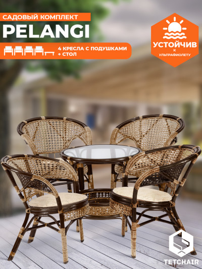 Комплект "PELANGI" 02/15 ( стол со стеклом + 4 кресла ) [без подуш...