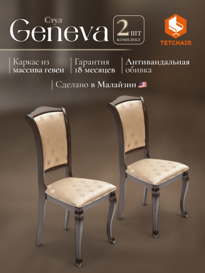 Стул Geneva ( GN-SC ) дерево гевея, 46х52х96см, Tobacco, ткань золотистые цве...