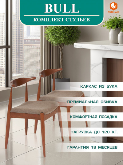 Стул мягкое сидение BULL каркас бук, сиденье ткань, 54,5*54*75см, Коричневый