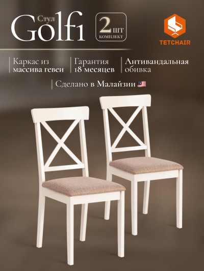 Стул Гольфи 2/ Golfi 2 дерево гевея, 45*51*94, ivory white, ткань кор.-зол. (...