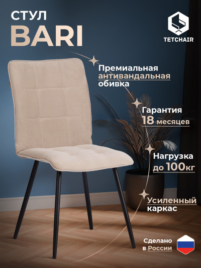 Стул обеденный Bari LT, флок , бежевый/черный, 7, 41х55х89 см