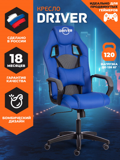 Кресло DRIVER (22) кож/зам/ткань, синий/серый, 36-39/TW-12