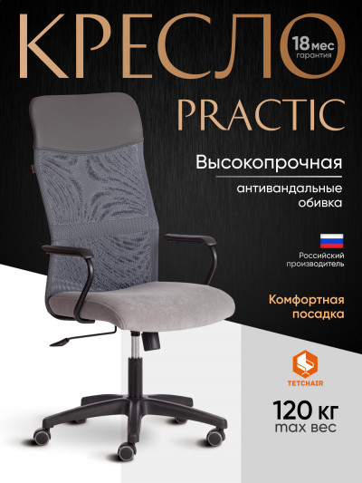 Кресло PRACTIC (мп) флок/кож/зам , серый/металлик, 29/W-12/36