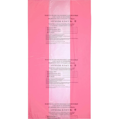 Пакет для мед.отходов кл.В красный 700х1100х18мкм, 120л, 100 шт/уп, Респект