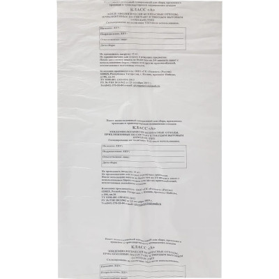 Пакет для мед.отходов кл.А белый 600x1000х10мкм, 100 л, 100 шт/уп, СЗПИ