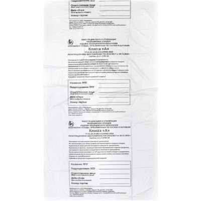 Пакет для мед.отходов кл.А белый 600х1000х18мкм,100л, 100 шт/уп, ПТП Киль