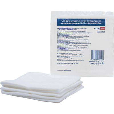 Салфетка сорб. марл. мед. стер. 5x5 10шт/уп, 8 сл. Angel/EVERSMED