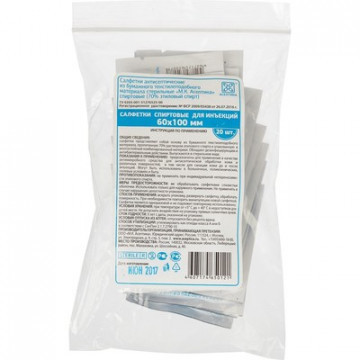 Салфетка спиртовая, для инъекций, этил. сп. 60х100мм АСЕПТИКА 100 шт/уп