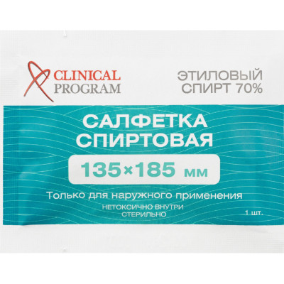 Сaлфетка для инъекций этил. cпирт 135х185мм Clinical Program 150 шт/уп