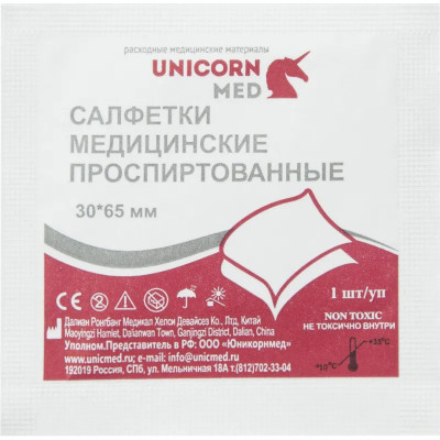 Салфетка спиртовая, антисептическая, этил. сп. 30х65мм SOYUZ 100шт/уп