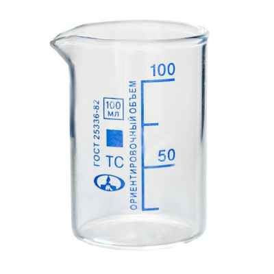 Стакан 100 мл с делением, Н-1-100, ТС, 16 шт/уп