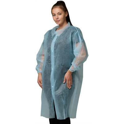 Халат н/с , на завязк, рук.манж, дл.140см, XL, пл 25, голуб, 10 шт/уп