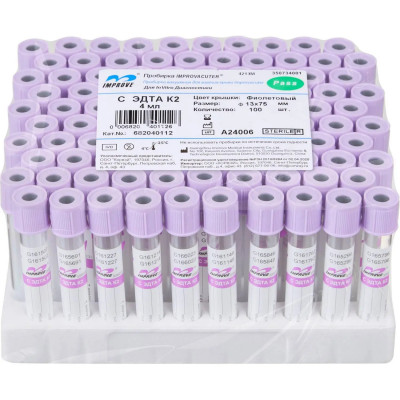 Вакуумные пробирки с ЭДТА-К2, 4мл Improvacuter 100шт/уп
