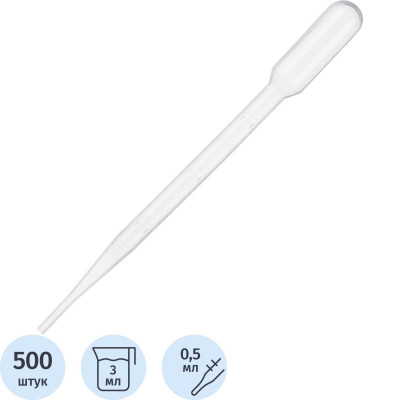 Пипетка Пастера 3мл, нестерил. градуированнная 500шт/уп MR