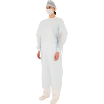 Халат н/с , на завязк, рук.манж, дл.110см, XXL,пл 20, голуб, 10 шт/уп