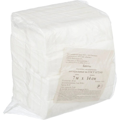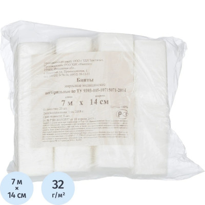 Бинт нестер. 7мх14см,пл.32г,общ.уп, 20шт/уп ШК02772