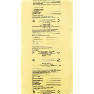 Пакет для мед.отходов кл.Б желтый 600x1000х10мкм, 100 л, 100 шт/уп, СЗПИ