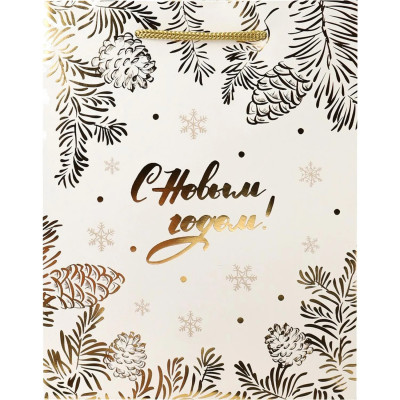 Пакет подарочный 18x23x10см(M)Золотистый снегопад ПКП-6641 НГ
