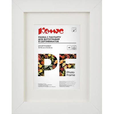 Рамка с паспарту А5 15x20 см Комус/ATTACHE МДФ багет 18мм белая