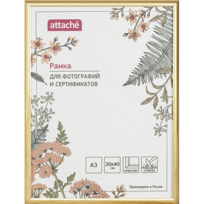 Рамка пластиковая Attache 30х40 (А3) Золотая (гля