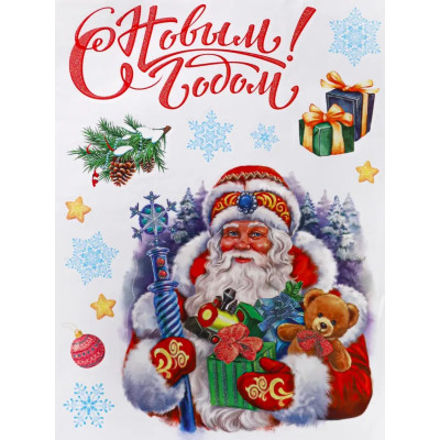 Наклейка НГ на окно Волшебный Дедушка Мороз 30x40см,с раскраск. НУ-7041