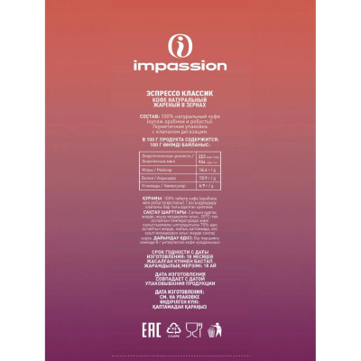 Кофе в зернах Impassion Espresso Classic/ Импэшн Эспрессо Классик 1кг