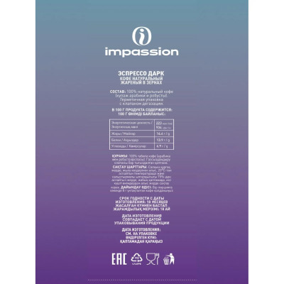 Кофе в зернах Impassion Espresso Dark/ Импэшн Эспрессо Дарк 1кг