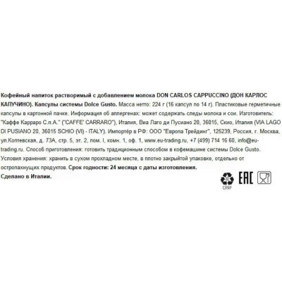 Кофе в капсулах Don Carlos Cappucino (DG), 16шт/уп