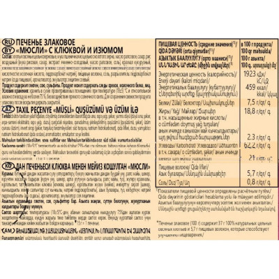 Печенье Любятово злаковое мюсли с клюквой и изюмом, 120г
