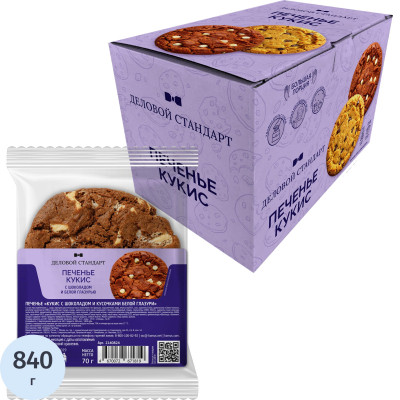 Печенье Деловой Стандарт Кукис шоколадный с белой шоколад глаз 70г 12шт/уп