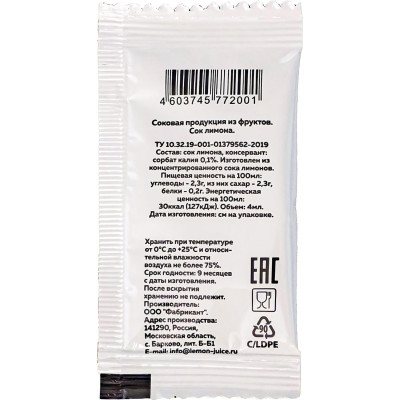 Приправа Лимонный сок порционный Фабрикант, 100пакx4мл