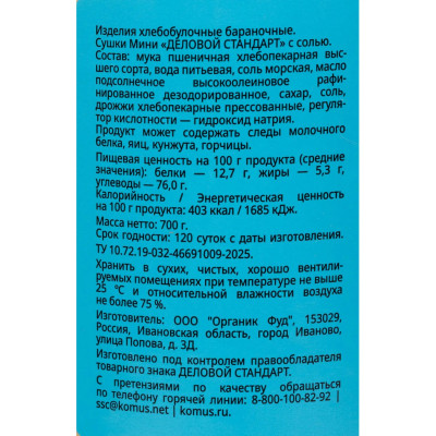 Сушки Мини Деловой стандарт с солью, банка 700г