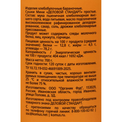 Сушки КРОХА ванильные Семейка ОЗБИ 200 г. , 278
