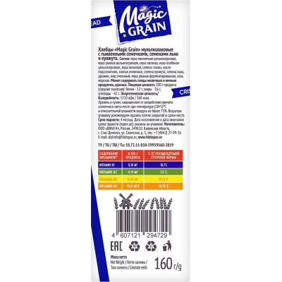 Хлебцы Magic Grain Ржаные с семенами льна подсолнечника кунжута 160г 1219