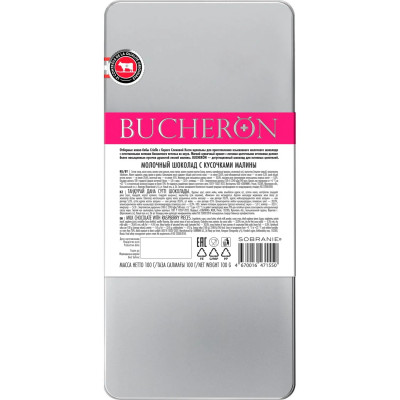 Шоколад BUCHERON молочный шоколад с малиной, ж/б, 100г