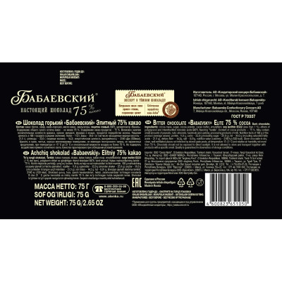 Шоколад Бабаевский с шоколадной начинкой, 20шт х 50г